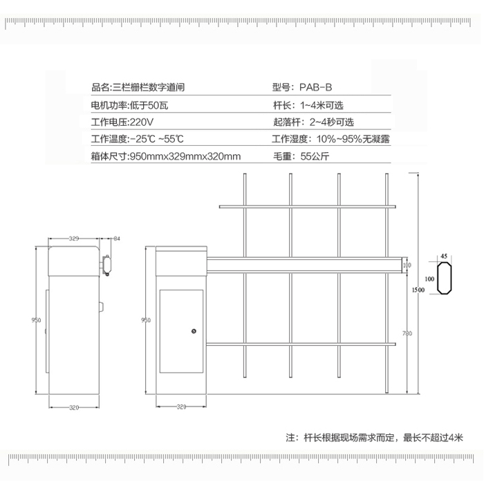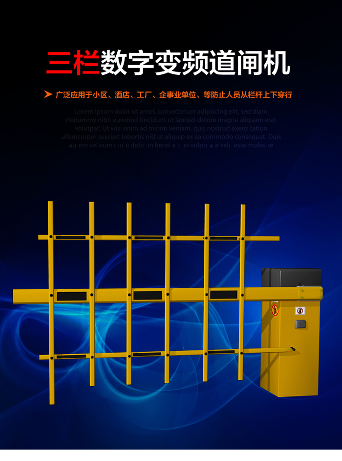 三欄柵欄數(shù)字道閘-B型,外觀結(jié)構(gòu)由三欄柵欄和道閘箱體組成,美觀實(shí)用。三欄道閘采用100W的一體化減速力矩電機(jī),堵轉(zhuǎn)時(shí)無電流沖擊,無過熱,保護(hù)延長控制器的使用壽命。由于是三欄柵欄的原因,其升降速度需要緩慢一些;加上三欄道閘最大優(yōu)勢,可以防止人員從柵欄底下進(jìn)出和柵欄上方跨進(jìn)跨出過功率大主要安裝在各車輛進(jìn)出收費(fèi)口;因此該道閘非常適合一些較為高檔、隱蔽性需求性強(qiáng)的停車管理場合。