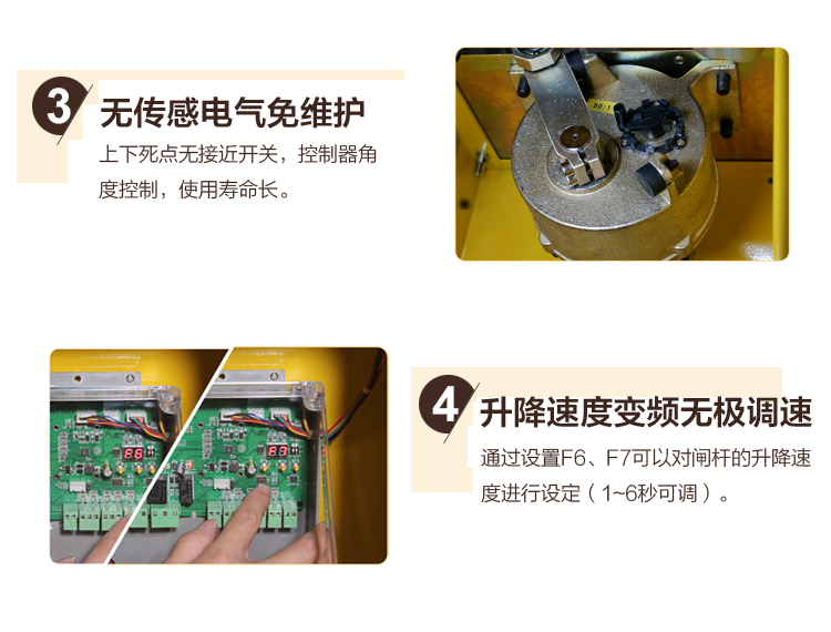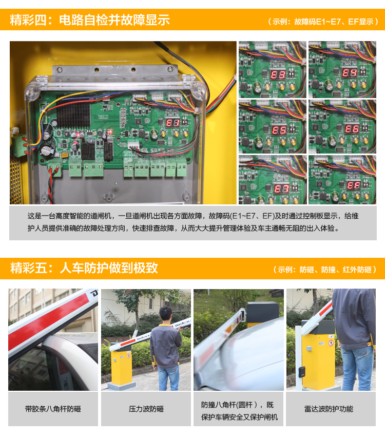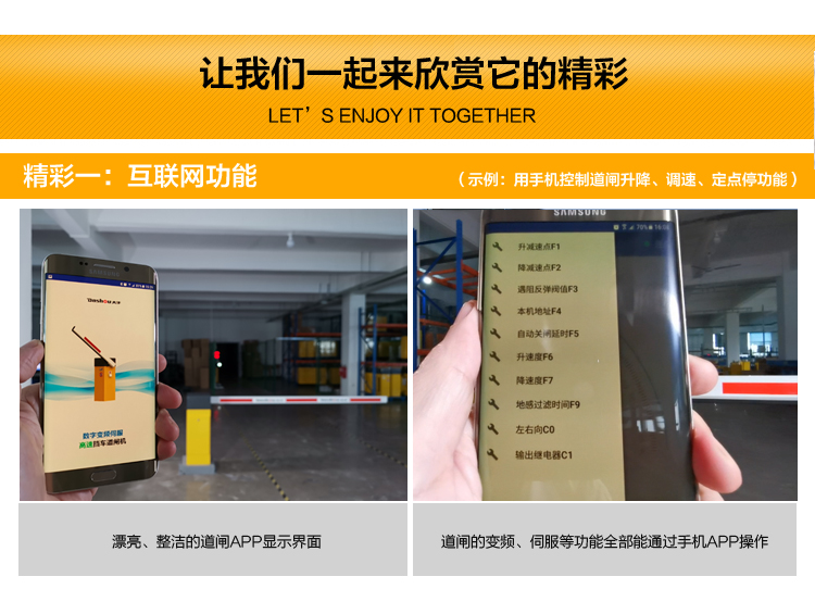 PAB-E直流伺服變頻數字道閘機是公司最近上市的新品道閘機,新道閘機最大程度為使用者提供便利:一是閘機左右向隨便換;二是更換閘桿類型無需另購道閘機;三是伺服功能,自行調節閘桿平穩度,減少抖動;四是故障自檢功能,大大提高故障解決速度;五是互聯網功能,直接用手機APP,控制閘機的升降,調速,定點停等功能。。。