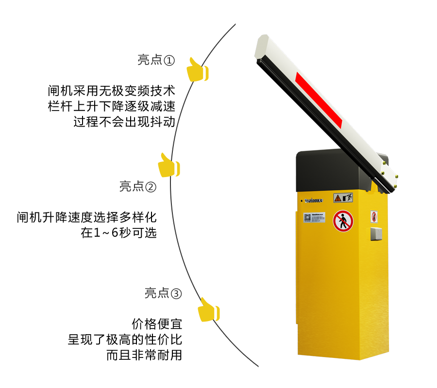 1)系統自帶壓力波防砸,遇阻反彈,保護道閘;