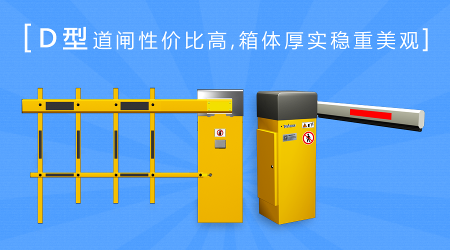 D型道閘:無極變頻直流蝸輪蝸桿電機,超高性價比,整體道閘厚實穩重,外形美觀。采用全國獨創的從動配重搖臂,已申請國家專利保護。