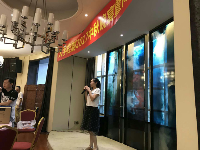 晚宴開始前,大手公司總經理馬總做了精彩的致辭 晚宴在一片歡快、幸福中度過。宴結束后,大家提著大包小包戰利品離開,彼此的臉上都期盼著對公司來年的更精彩的博餅活動。